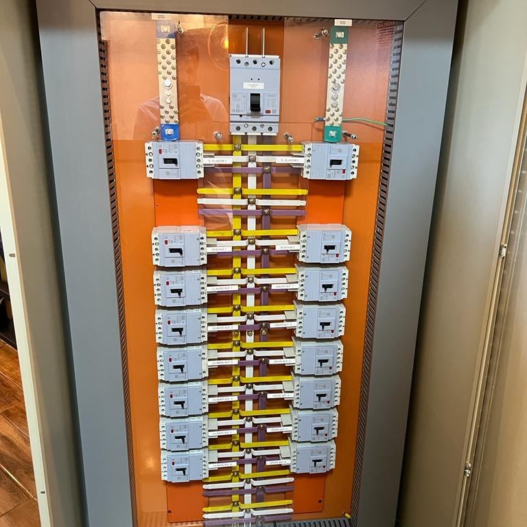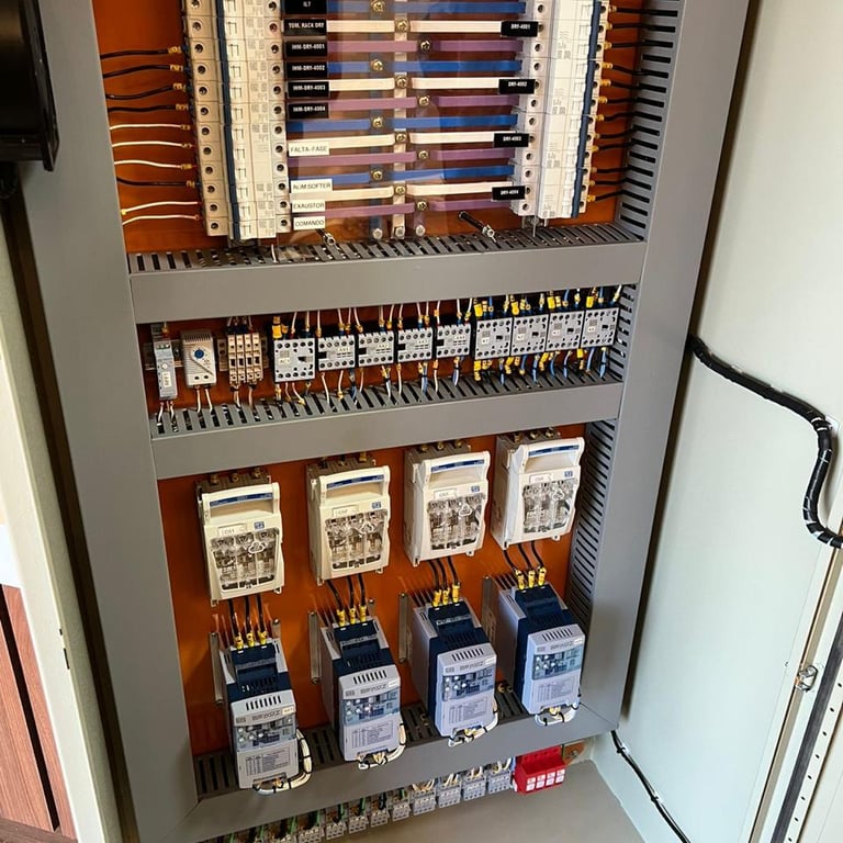 Substituição de Componentes: Troca de disjuntores danificados, contatores colados ou barramentos oxidados.