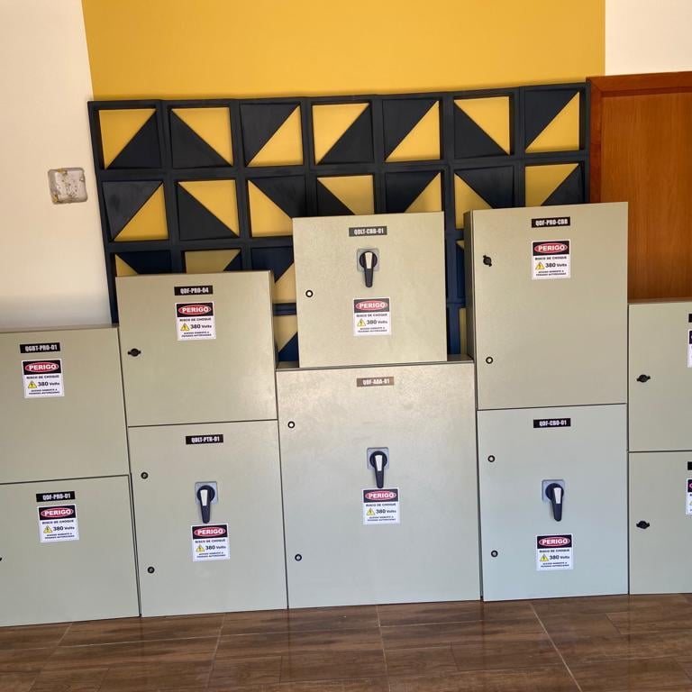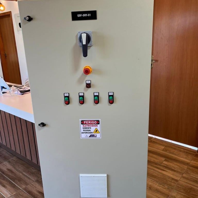 Quadros Gerais de Baixa Tensão (QGBT): Robustez para grandes cargas, com barramentos dimensionados e identificação clara.