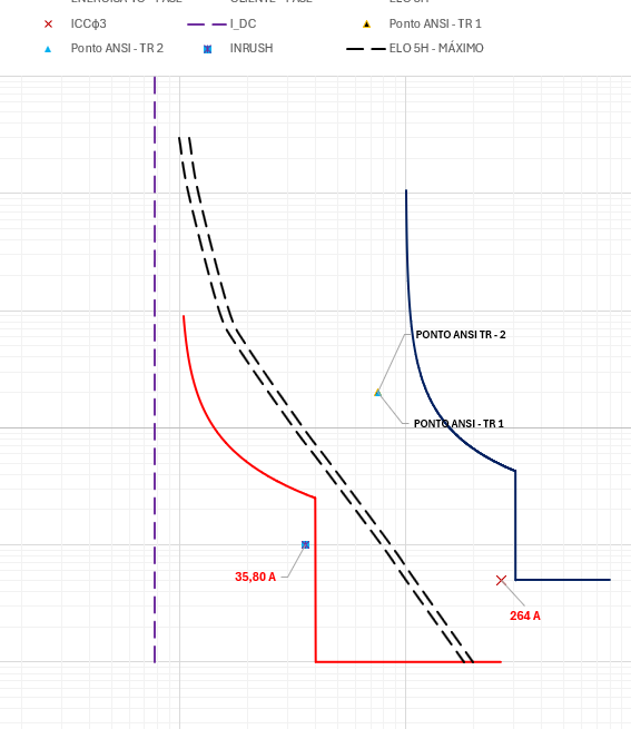 Definição de Curvas (Coordenação): Ajustamos as curvas de tempo x corrente dos relés e disjuntores para garantir a seletividade cronológica e lógica entre a proteção de entrada (concessionária) e a proteção interna.