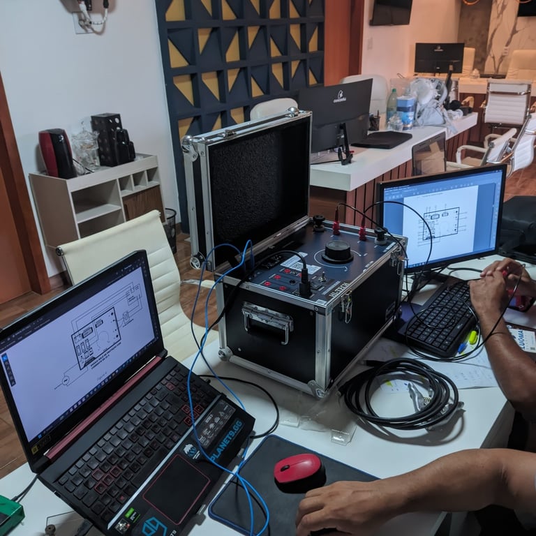 Parametrização e Testes (Comissionamento): Não entregamos apenas o papel. Vamos a campo com malas de testes aferidas para parametrizar os relés (Funções 50/51, 50N/51N, etc.) e injetar corrente, validando se o equipamento está atuando exatamente conforme o estudo teórico.