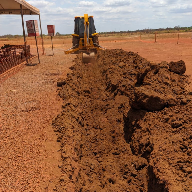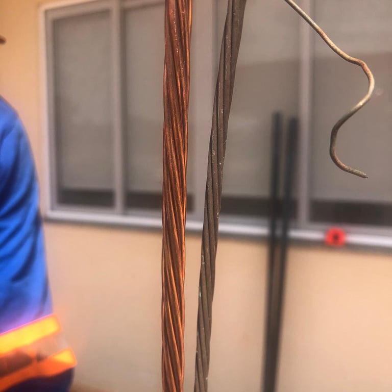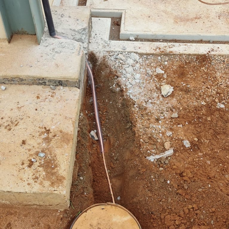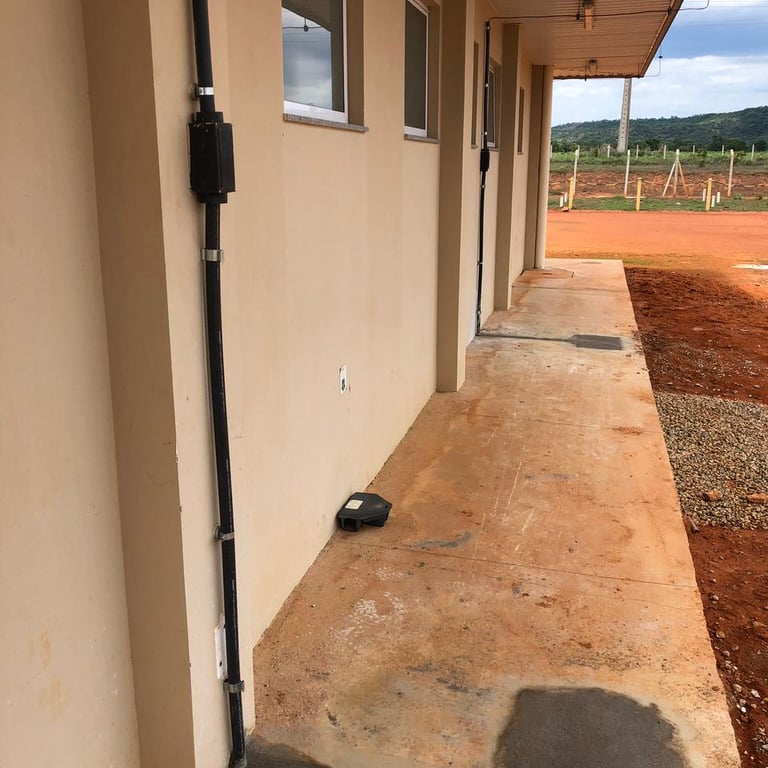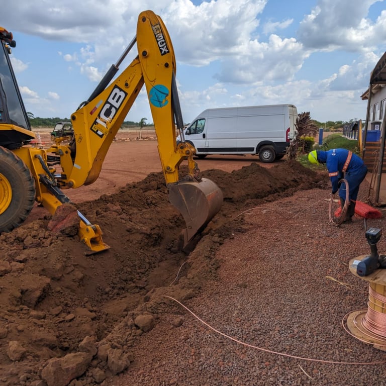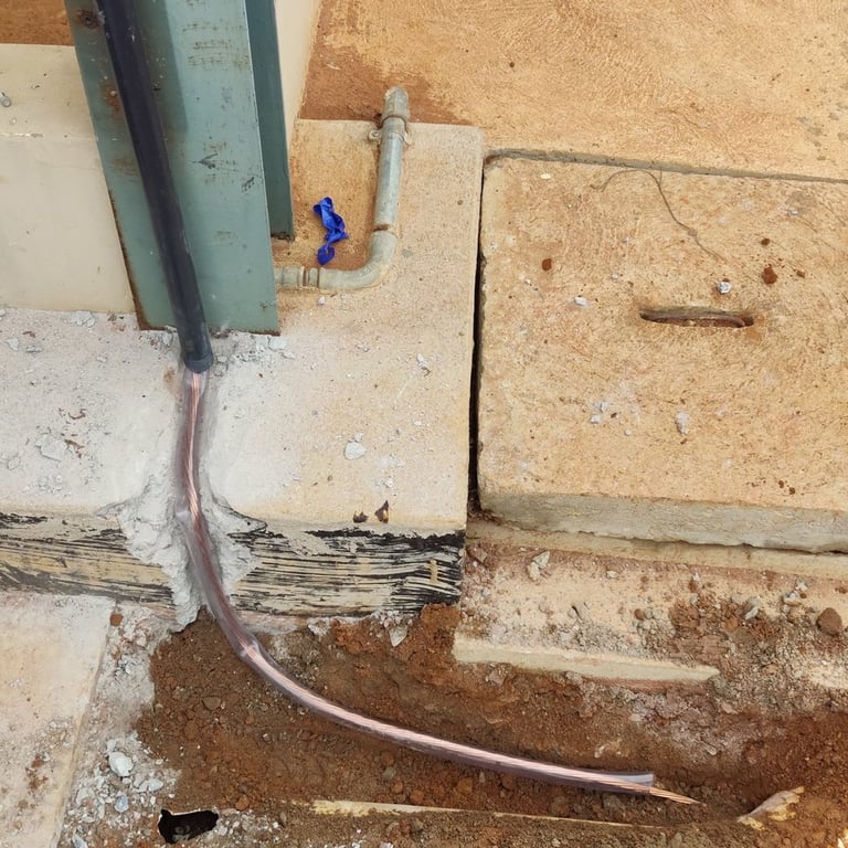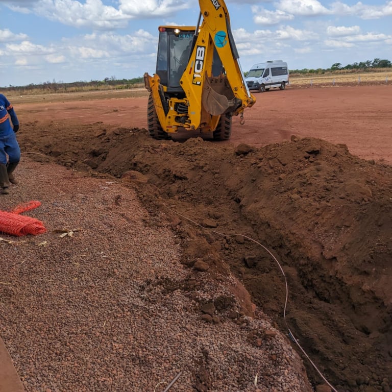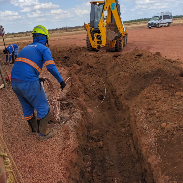 Instalação completa de anéis de aterramento perimetrais para garantir a dissipação segura de correntes.