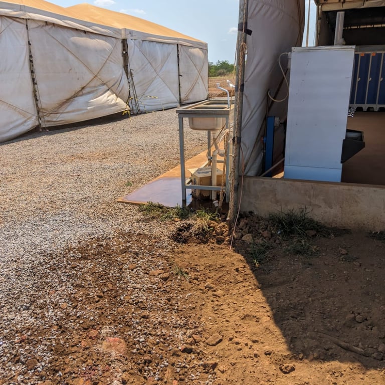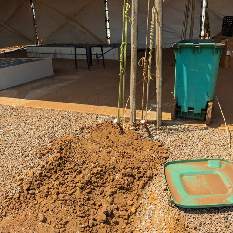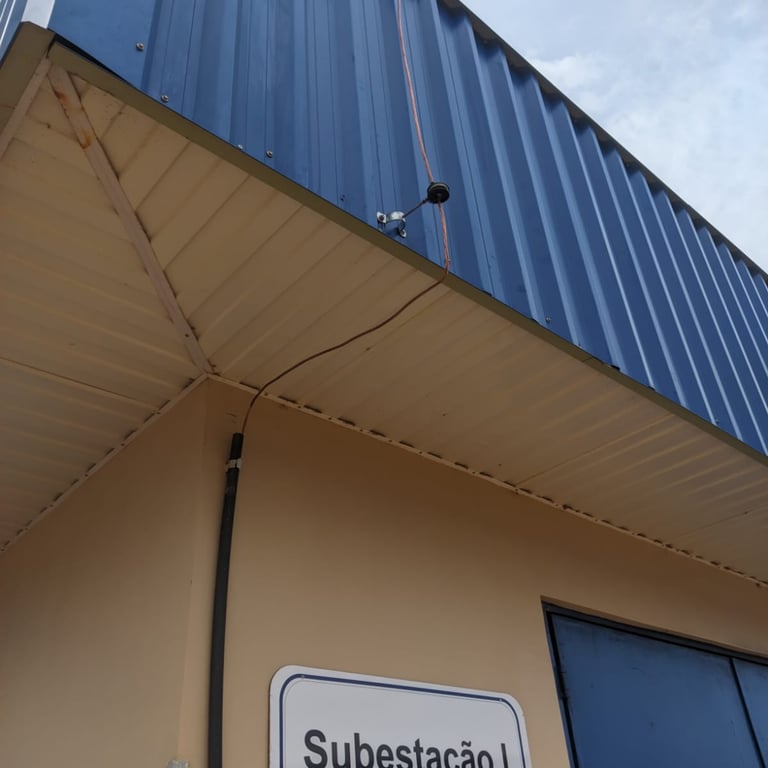 Solução Energize: Executamos a instalação de um sistema robusto de aterramento. O escopo incluiu a construção de anéis de aterramento no solo para criar uma malha eficiente de baixa impedância. Além disso, realizamos a interligação e equipotencialização de todas as tendas e estruturas metálicas da área, integrando-as ao sistema de proteção conforme as diretrizes da norma NBR 5419.